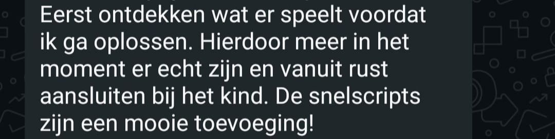 En je krijgt taal die écht binnenkomt, zinnen die veiligheid brengen, in plaats van olie op het vuur gooien.